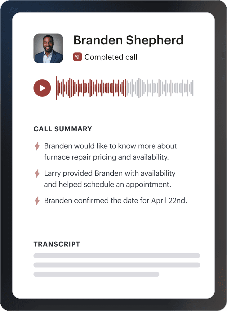 Larry can manage your front desk, answer the phone 24/7, book jobs directly into your calendar—all while sounding like your best employee.