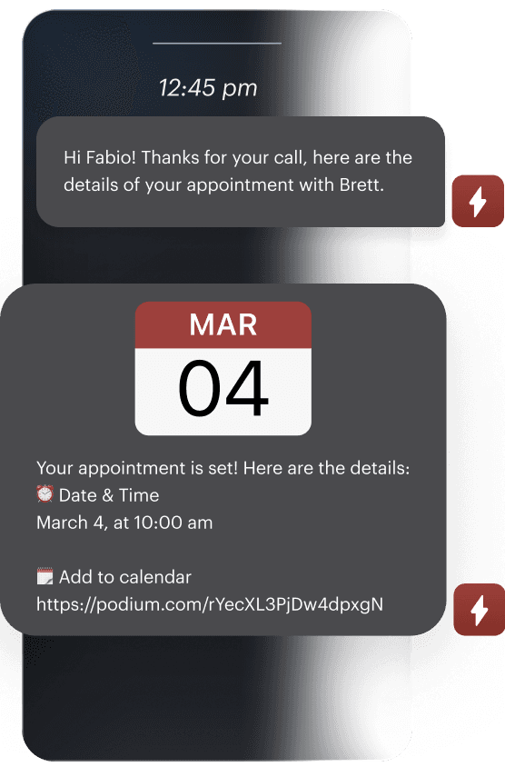 Connect with customers about upcoming appointments, personalized offers, and more—all through text.