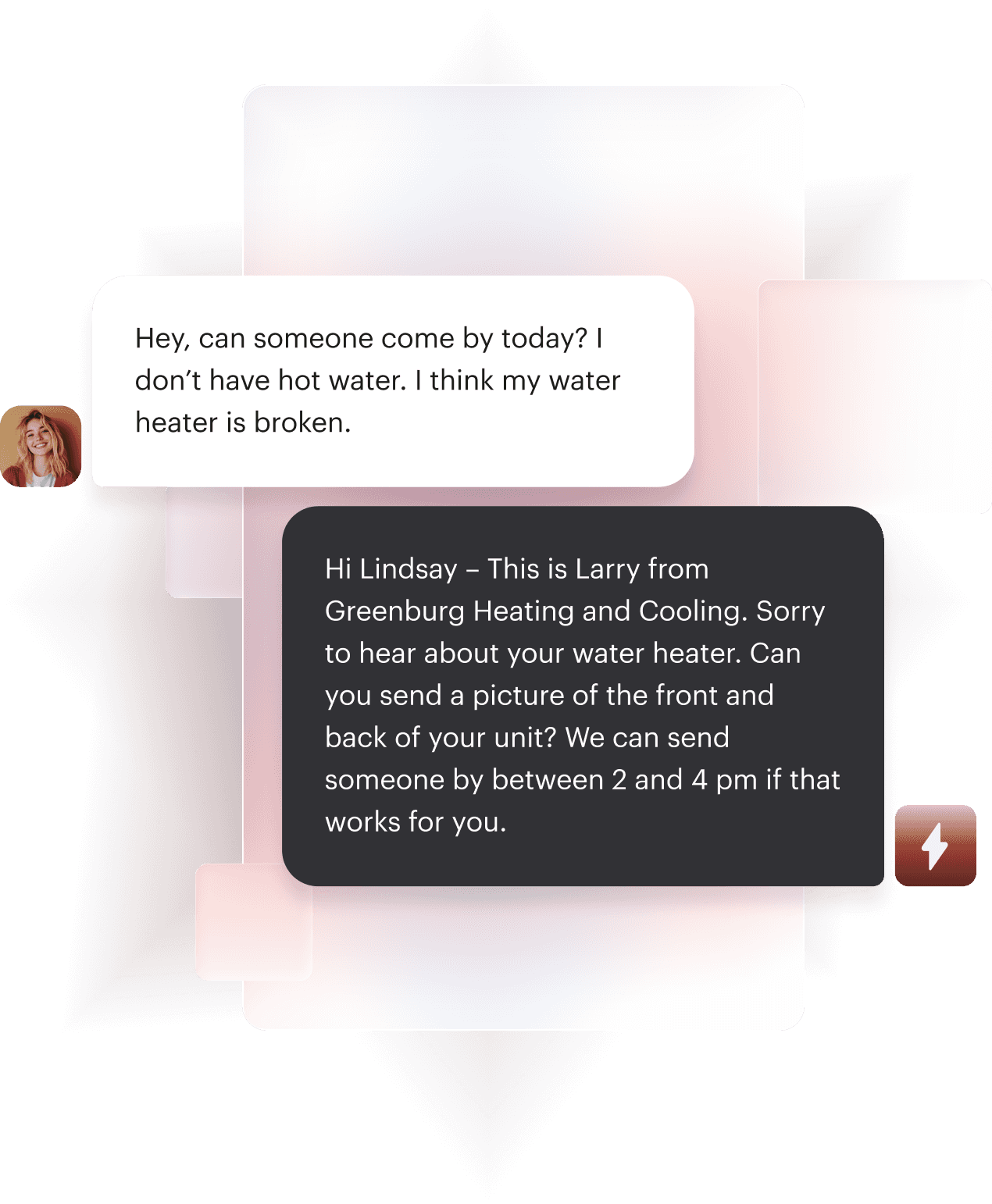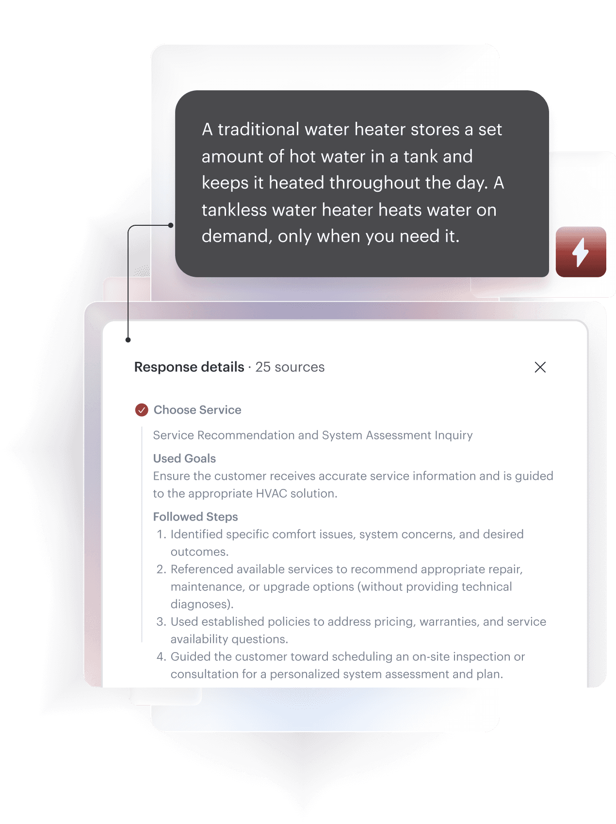 Larry knows your workflows and procedures, evaluates each situation—from emergencies to tune-ups to warranty calls—and reasons through steps to drive more revenue.