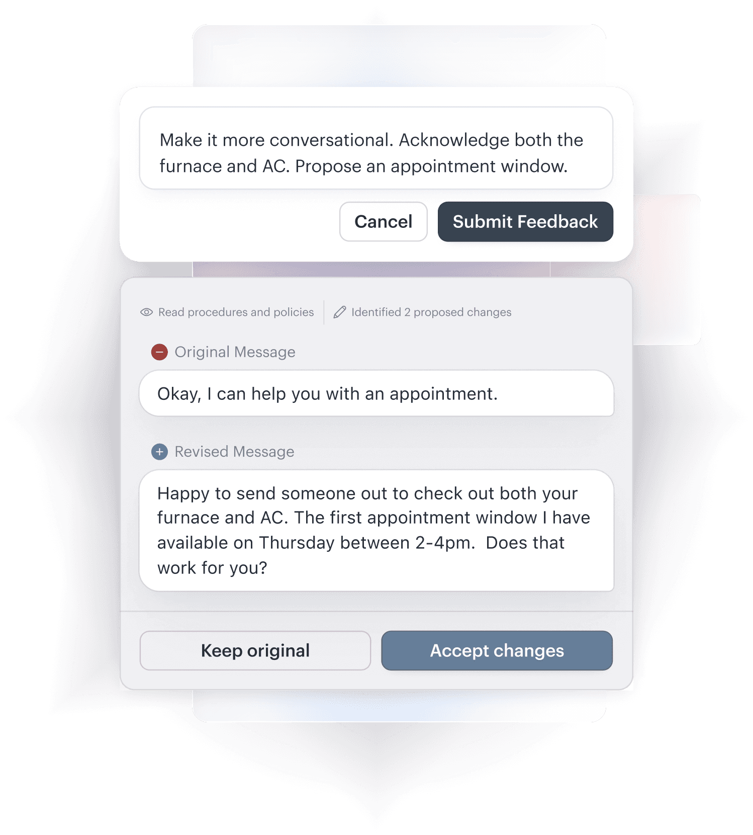 No coding or configuration required. Just describe the change you want, and Avery immediately updates how she responds—applying that learning across all future conversations.