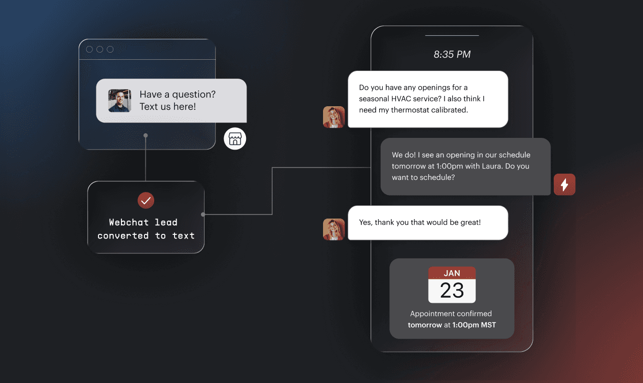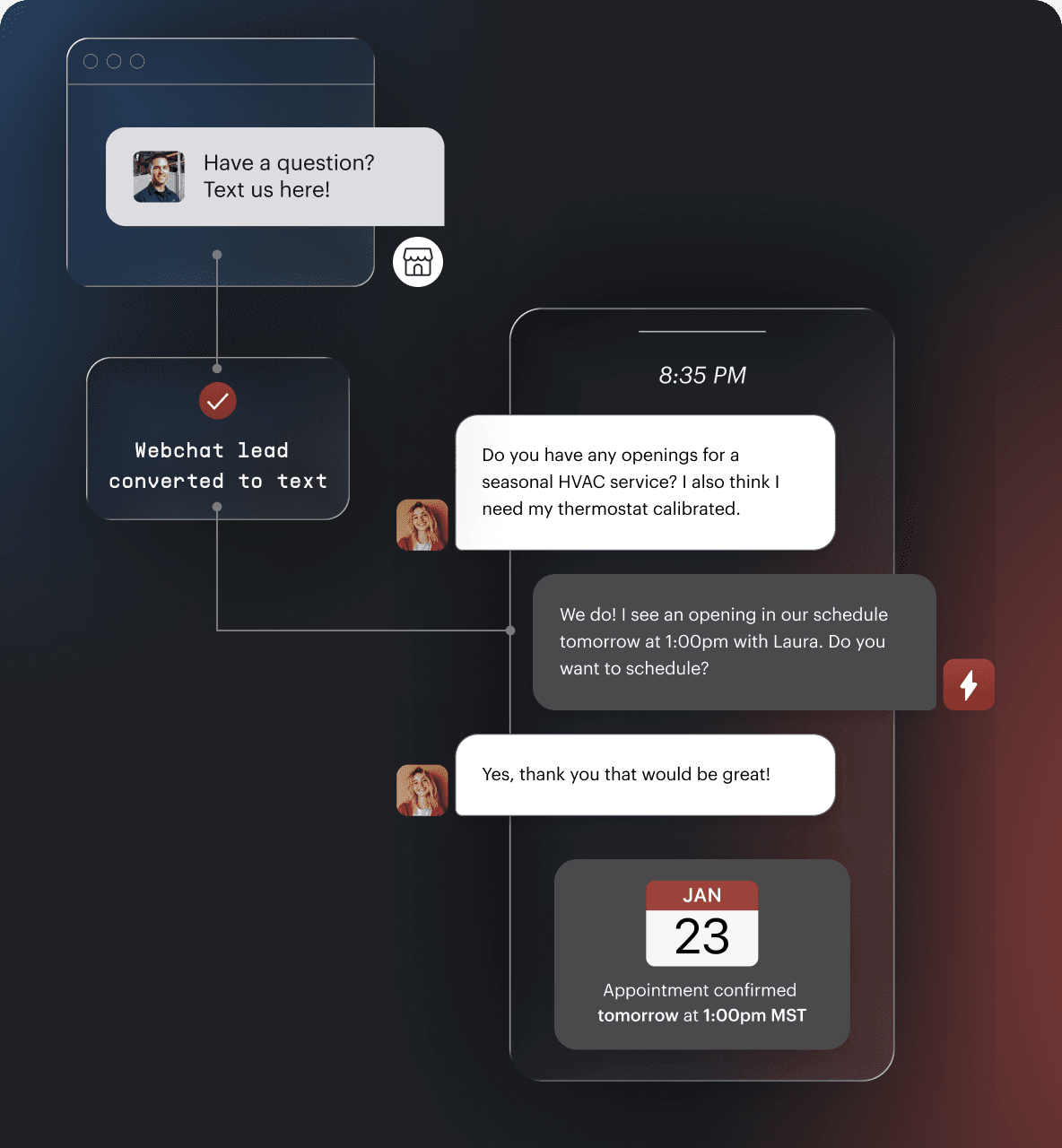 Larry manages all lead and customer text conversations using natural language, answering questions, fielding inquiries, and driving leads to book an appointment.