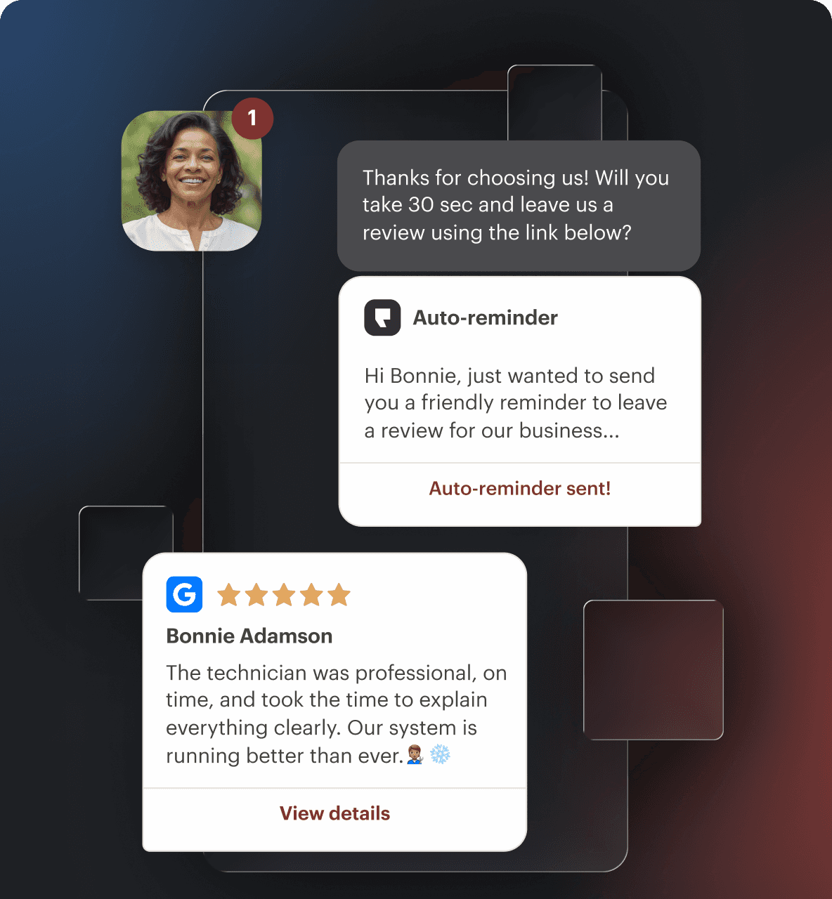 Larry manages the backend work that drains your time—appointment reminders, follow-ups, upsell conversations, and review requests.