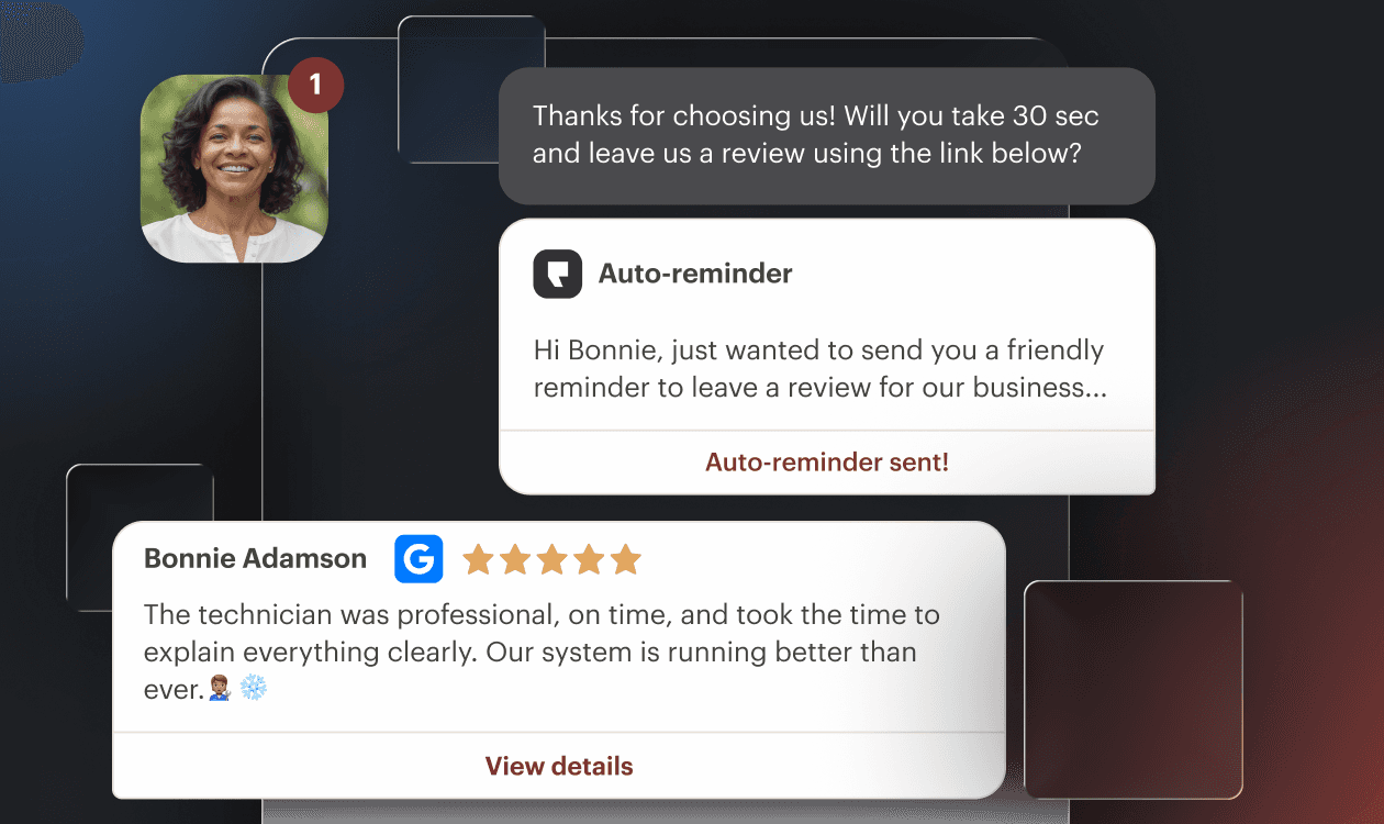 Larry follows up after each job within a specific timeframe to upsell on maintenence plans, ask for a review, and check in on installed products.