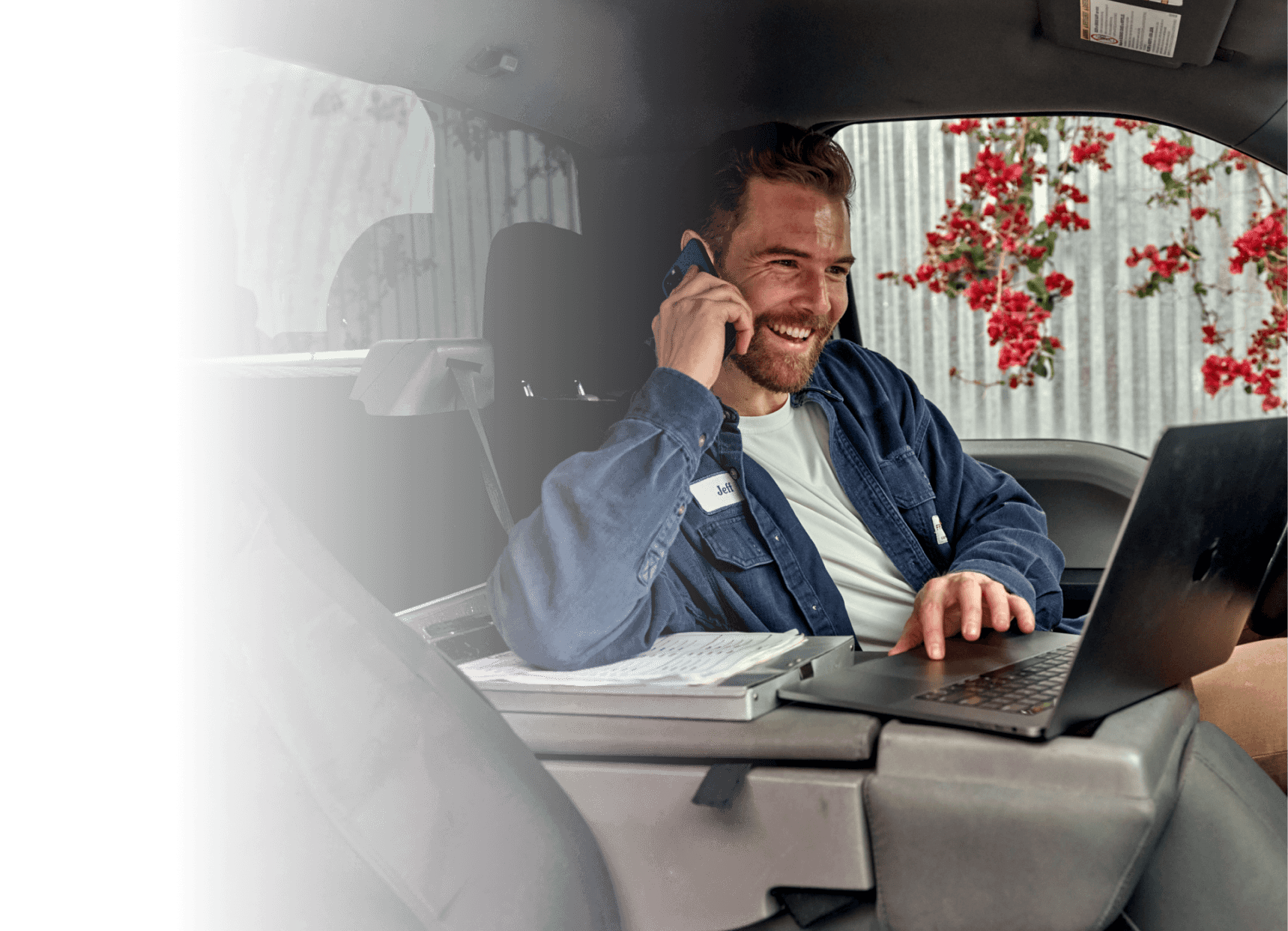Larry updates customer profiles with new information from jobs, messages, and calls for a complete customer history.