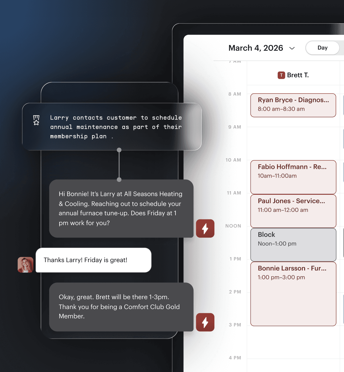 Larry upsells customers on services, memberships, and maintenance agreements, reaching out with personalized messaging at the right time.